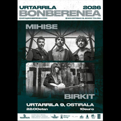 Mihise eta Birkit taldeak Bonberenean izango dira Urtarrilak 9 gaueko 22:00tan Sarrera 10€