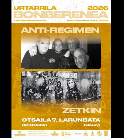 Indabe eta Mugan taldeak Bonberenean izango dira Urtarrilak 30 gaueko 22:00tan Sarrera 10€
