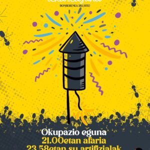 Abenduak 23 gaueko 21:00etan afaria izango da okupazio eguna ospatzeko. ondoren 23:58etan su artifizialak izango dira