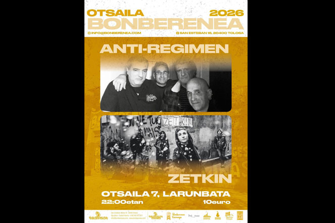 El día 7 de Febrero a las 22:00h actuara en Bonberenea Anti-regimen y Zetkin