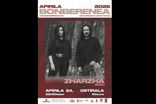 El día 24 de Abril a las 22:00h actuara en Bonberenea Zharzha(Cat)